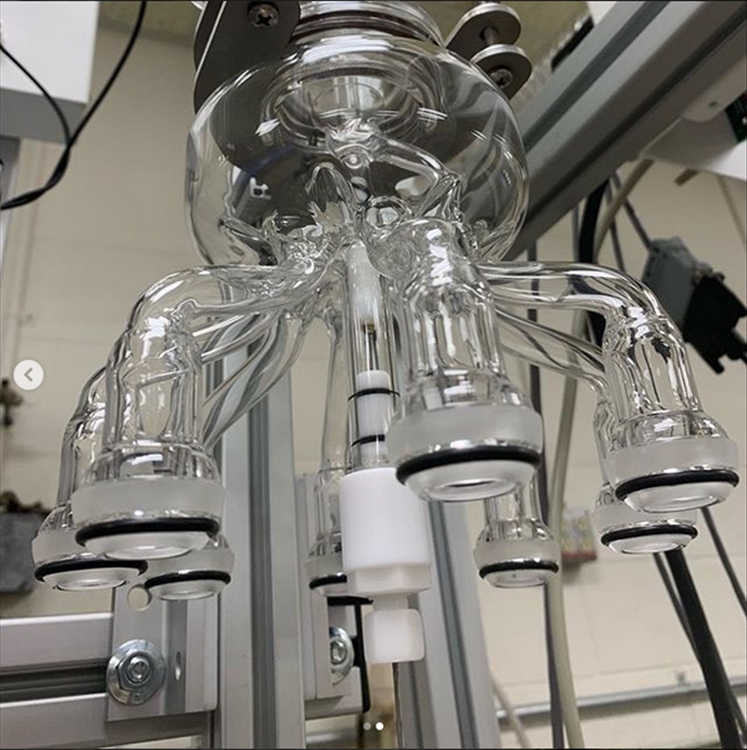 - Vorlagewechsel - der Fraktionssammler kann aus der Destillation isoliert werden. Volle Gefäße können unter Vakuum ausgewechselt werden