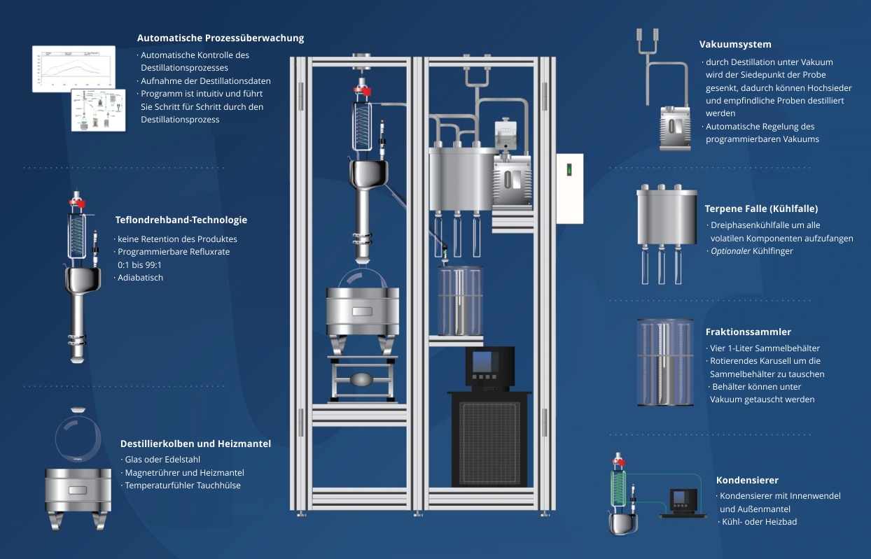 - Automatische Steuerung des gesamten Destillationsprozesses