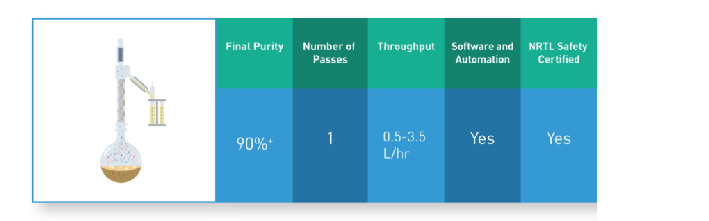 Single Pass: Cannabisöl kann in in nur einem Destillations-Durchgang aufgreinigt werden. Kein Verlust von Cannabisöl beim Destillationsvorgang.