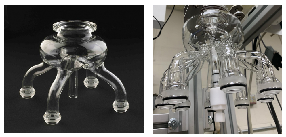 Fraktionssammler mit vier bzw. acht Positionen stehen für das Destillationssystem zur Verfügung, um destilliertes Material in die gewünschten Sammelbehälter zu leiten. Die Fraktionen können bei automatisierten Systemen unbeaufsichtigt gesammelt werden.