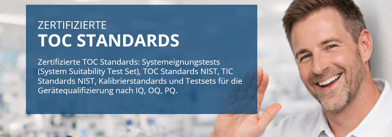 Wir bieten eine umfassende Reihe von Kalibrierungs-, Validierungs- und Systemeignungsstandards zur Überprüfung Ihres TOC Analysators.